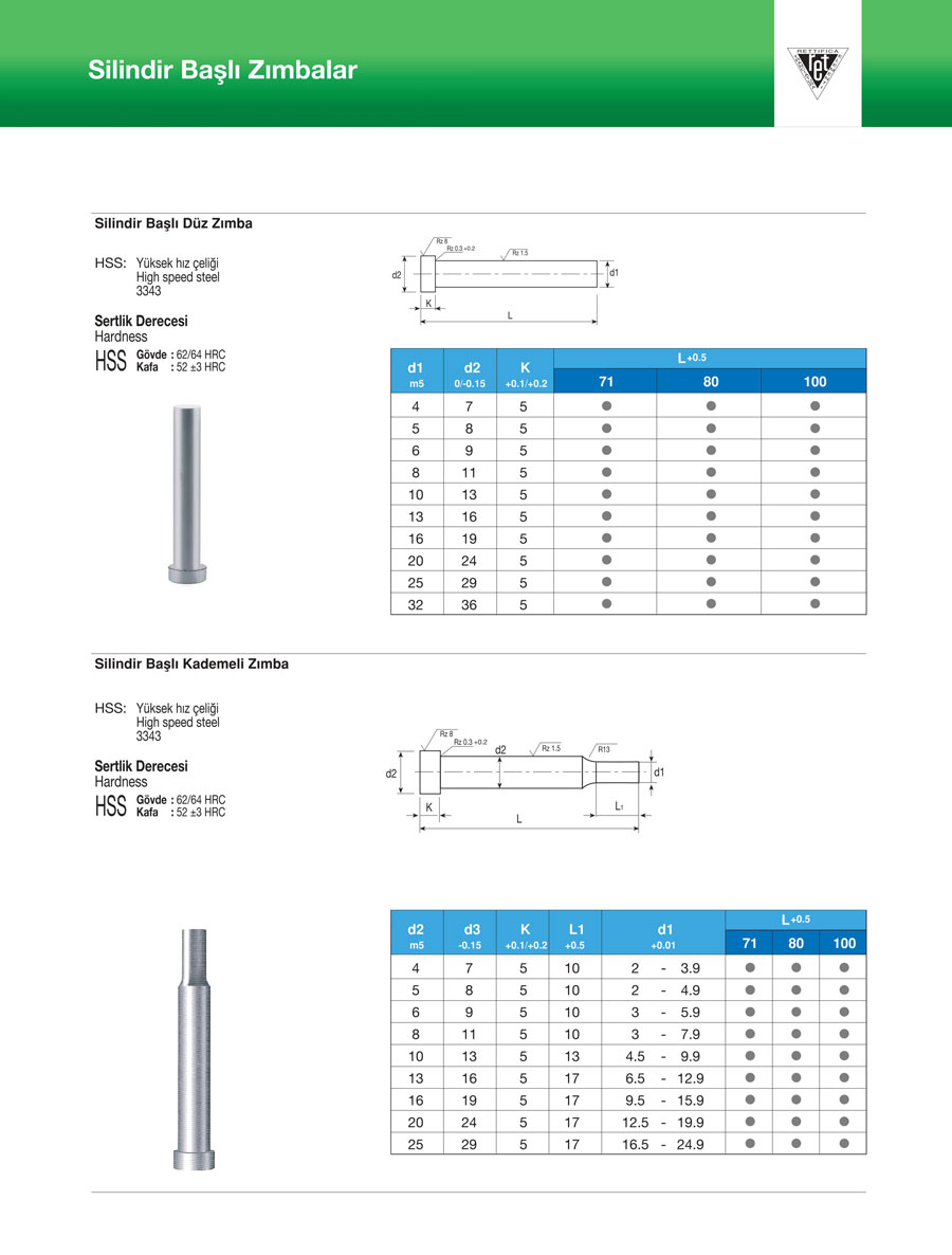 Silindir Başlı Düz ve Kademeli Zımbalar
